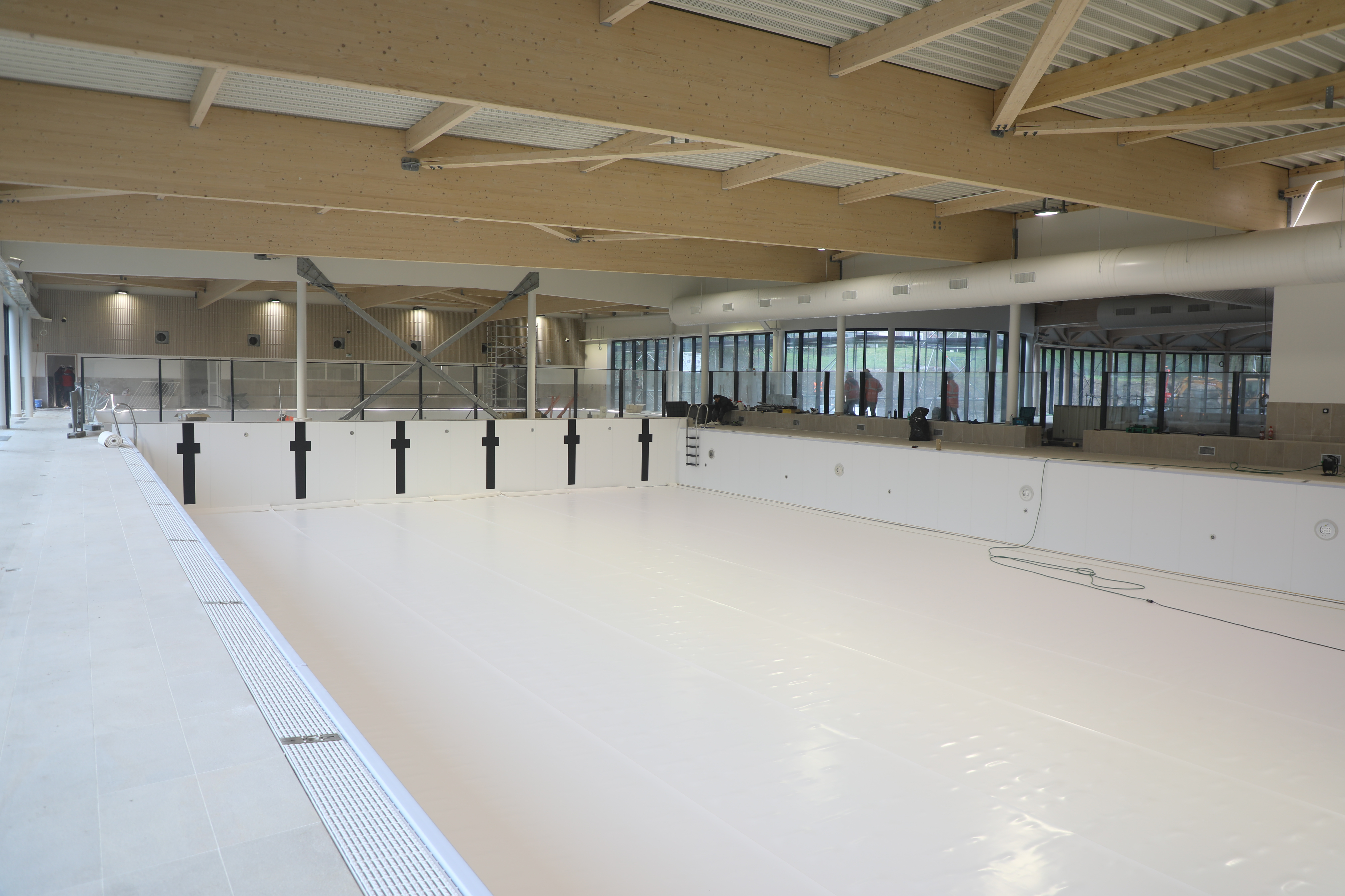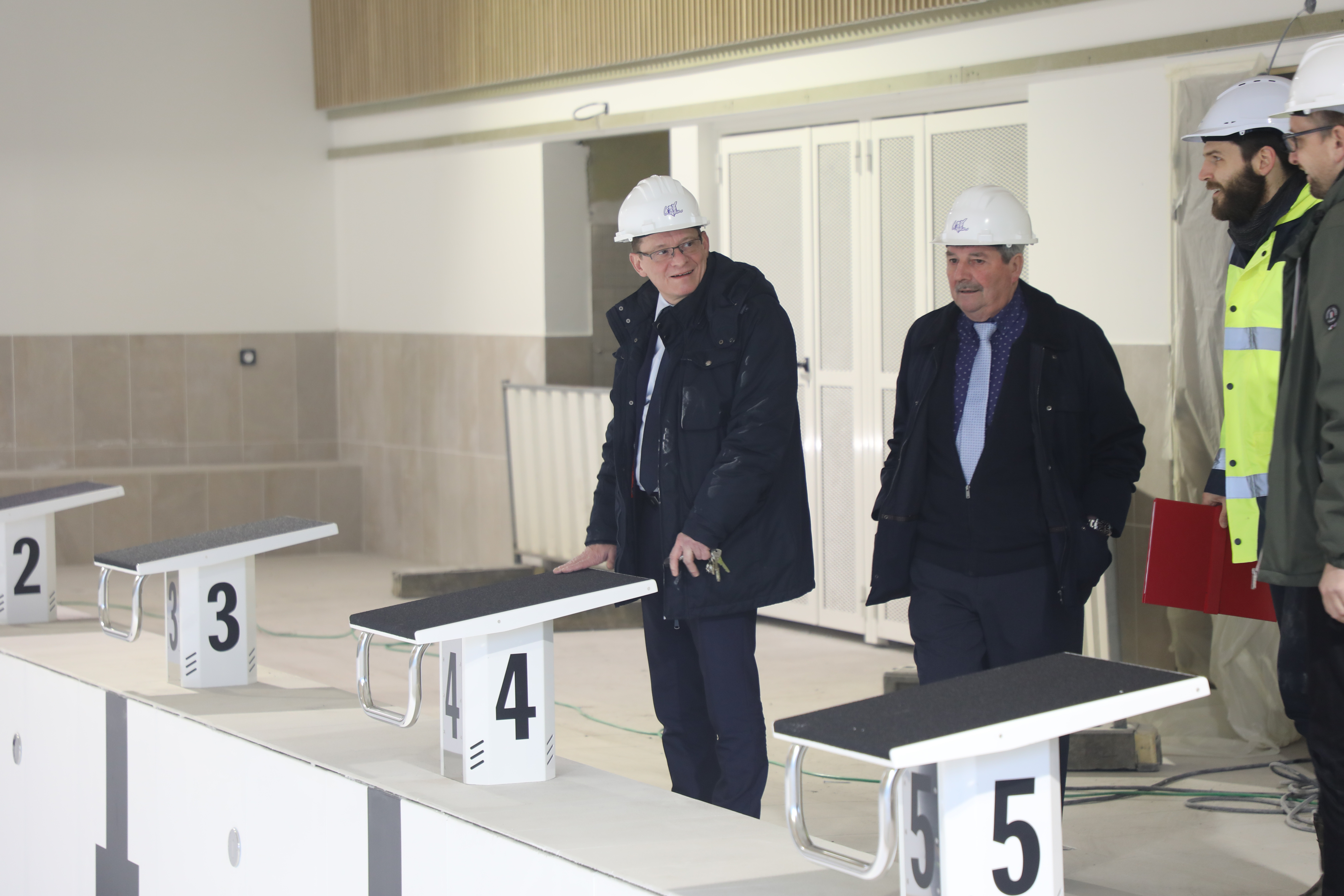 "On y est presque !", a déclaré Laurent Duporge, le maire, lors d'une visite de chantier du centre aquatique début février. Même si les travaux sont encore bien actifs, il est désormais aisé de se projeter dans les différents espaces que composeront cet équipement. Ce nouvel établissement à dimension sportive et ludique devrait être l’un des plus grands centres aquatiques au nord de Paris.